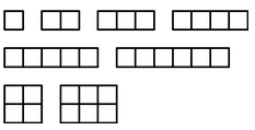 Với N = 6 hình vuông, ta có thể tạo ra hình chữ nhật bằng cách lần lượt xét các hình chữ nhật với chiều cao bằng 1 hoặc 2. Như hình dưới đây.