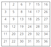 Một ma trận kích thước NxN được điền đầy bởi các con số từ 1 đến N2 theo đường chéo zig-zag. Bảng sau đây mô tả những con số trong ma trận kích thước N = 6.